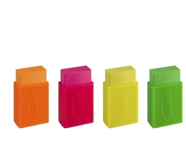 Apaga escrita tanto de lápis quanto de lapiseiras, independente da graduação do grafite.Seu material é atóxico e resistente, contando com o formato retangular compacto que pode ser facilmente guardado dentro de estojos. Dispõe também de uma capa protetora igualmente colorida para evitar que resquícios e poeiras sujem o seu corpo.
